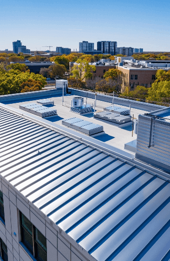 We use eco-friendly roofing systems, energy efficient roofing products and modern designs that reduce environmental impact and lower operating costs. From green roofing solutions to solar panel roofing integration, we offer innovative options for forward-thinking businesses.